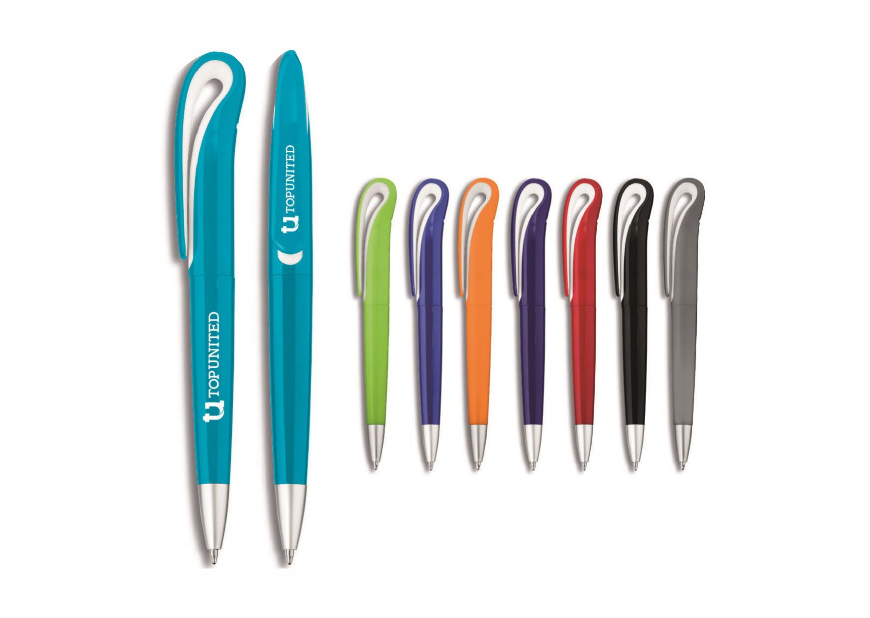 A beautiful pen that makes a great promotional giveaway. Colour barrel with white contrast under clip. Available in 8 awesome colours. With 2000 metres of black German ink.