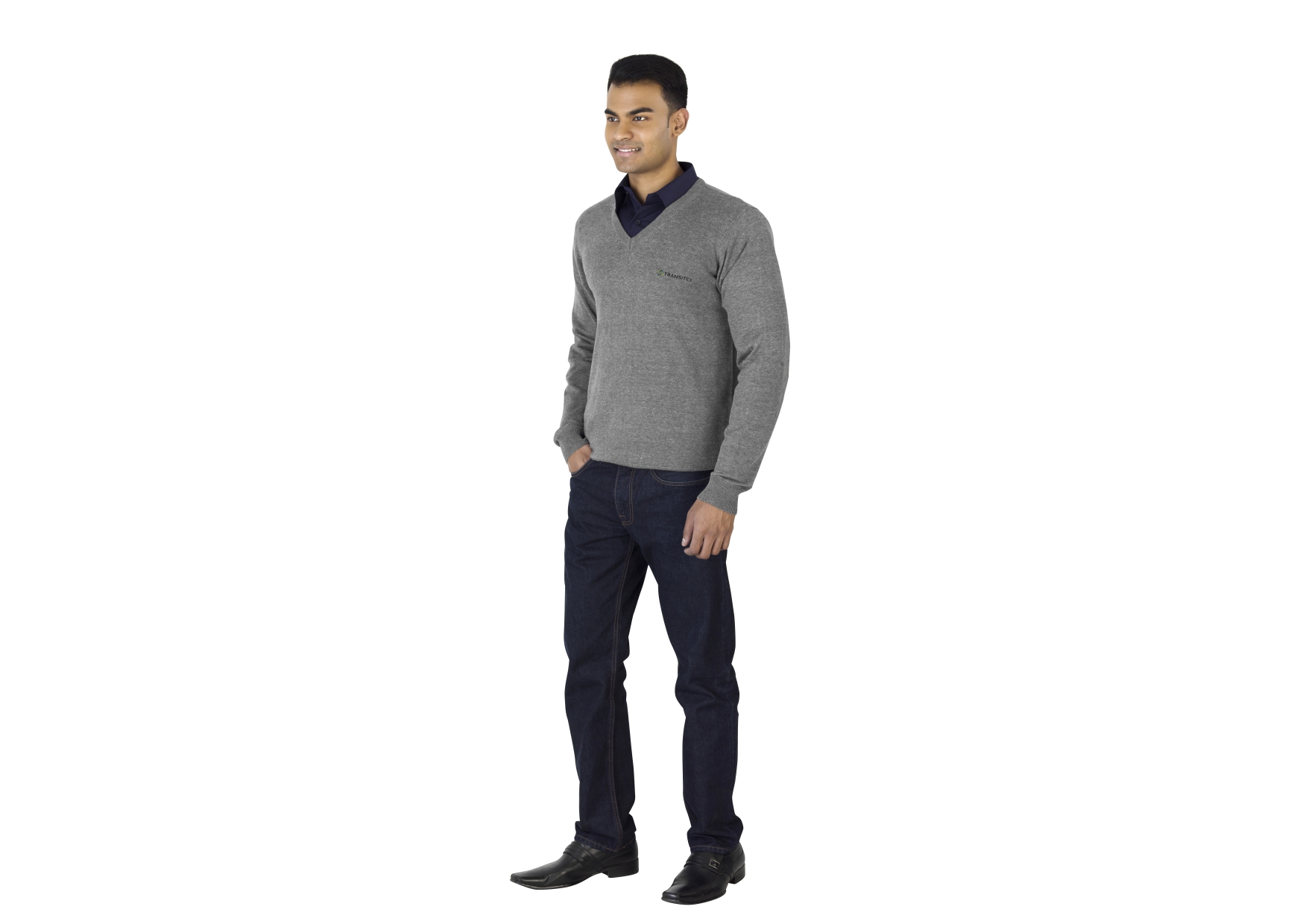 1x1 rib v-neck, cuffs and bottom hem
