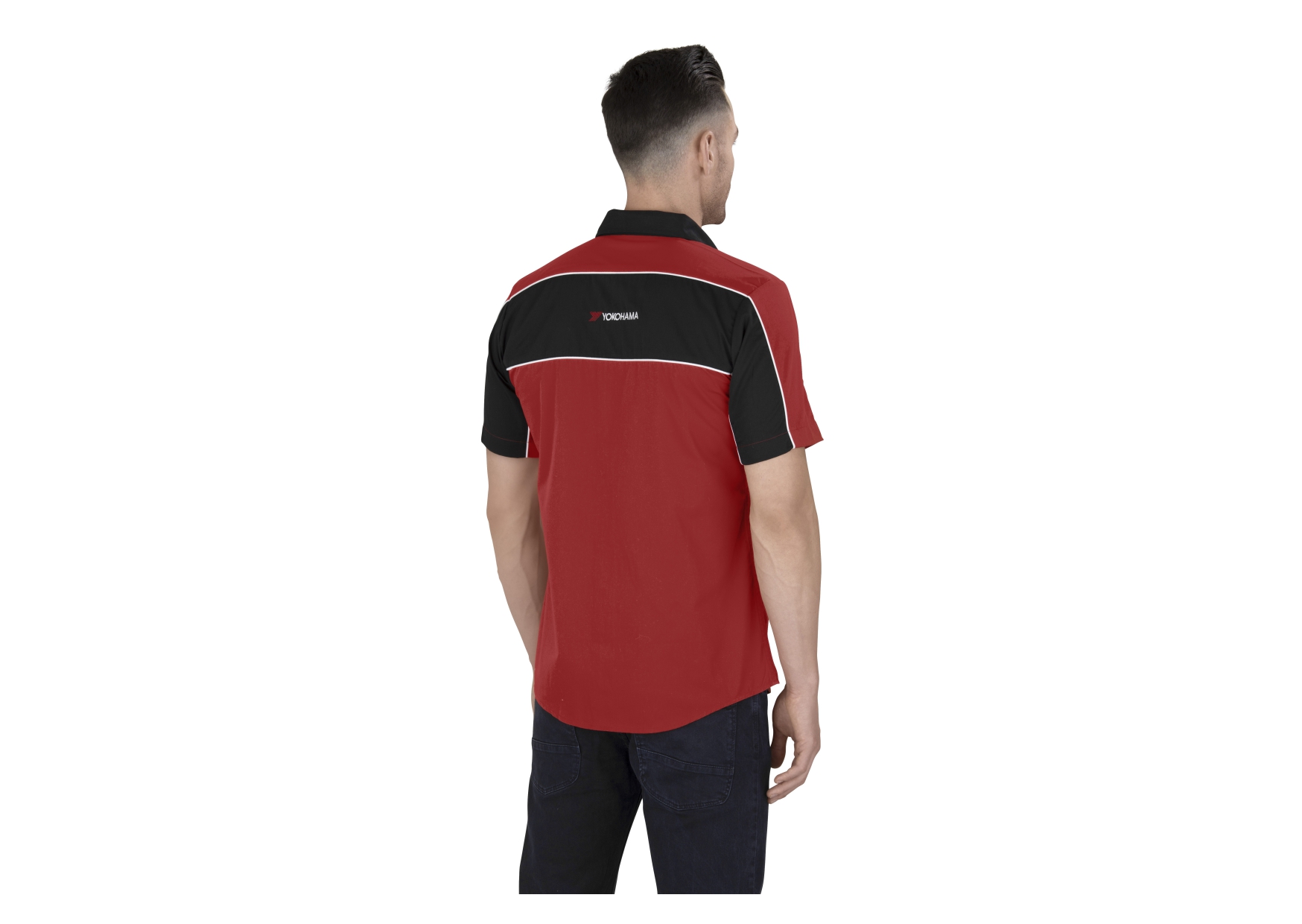 Contrast panels with piping detail at chest and back across shoulders