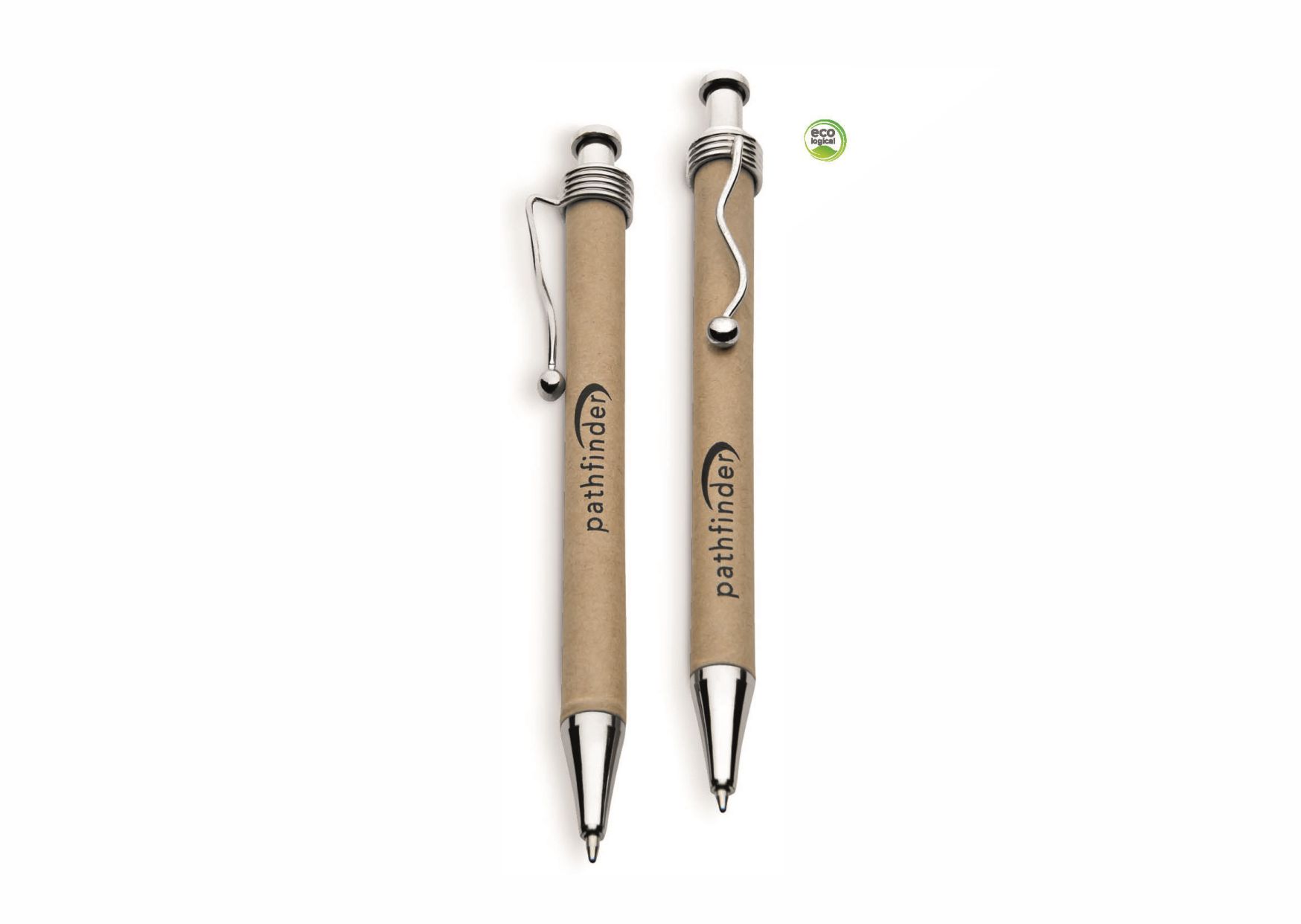A great environmentally-friendly giveaway perfect for any promotional event . Includes stunning uniquely shaped clip. recycled wood pulp & polished chrome. With black German ink.