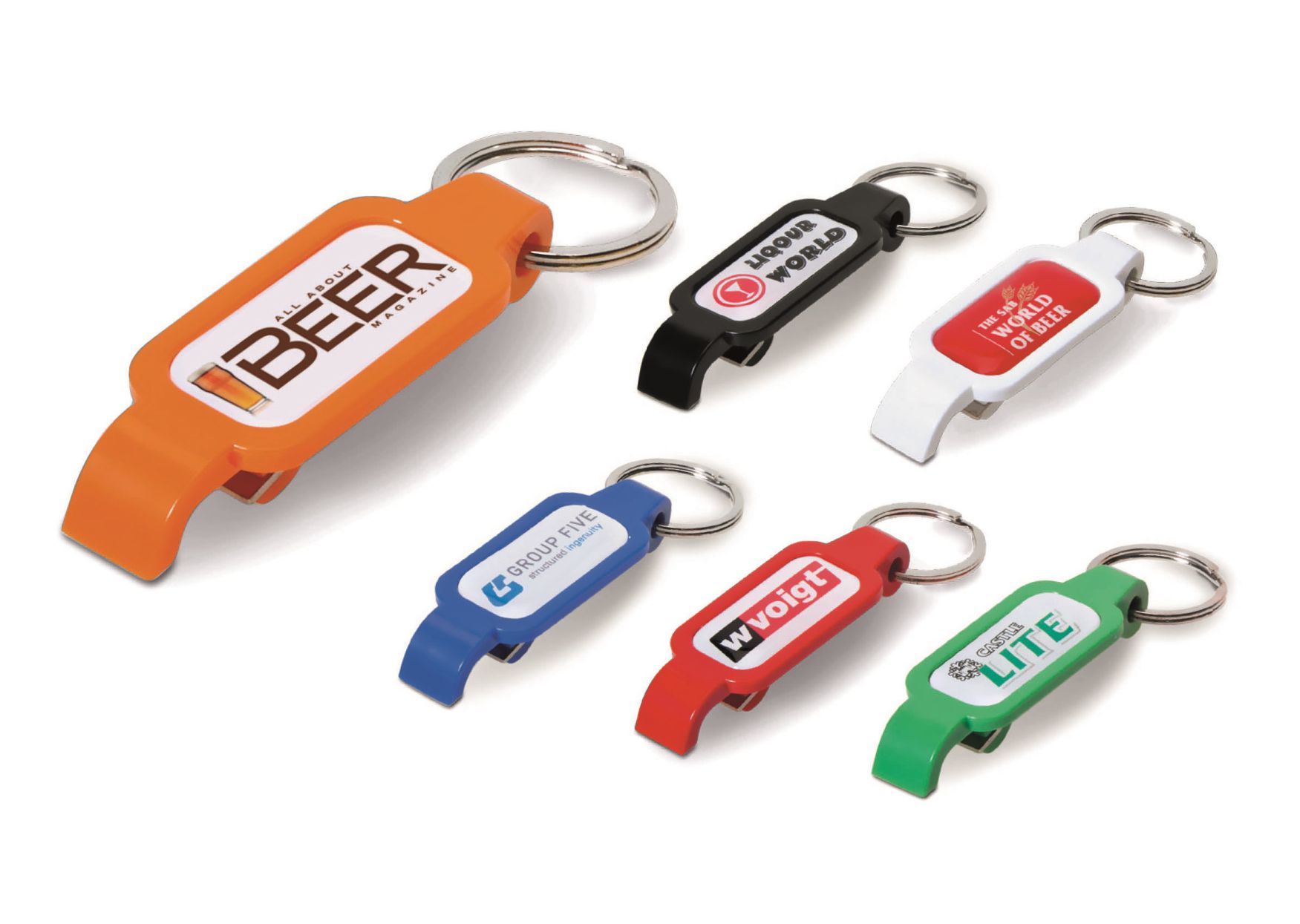 ABS; Size: 5 ( l ) x 2 ( w ); recess for domed sticker keyholder with bottle opener.